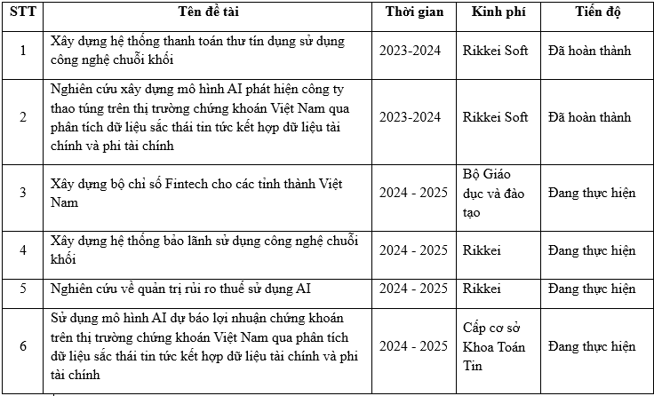 Từ việc hợp tác giữa các giảng viên thuộc Trường Công nghệ thông tin, Khoa Toán - Tin và Trường Kinh tế trong một số đề tài ban đầu liên quan đến Ngân hàng số và Tài chính thông minh như: